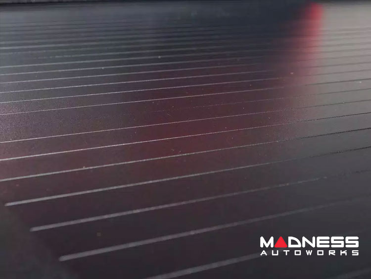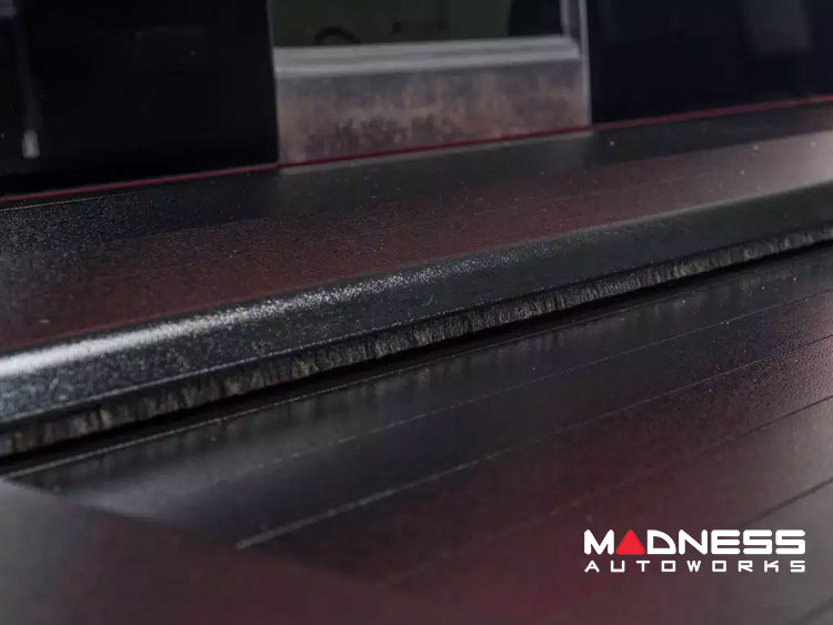 The tonneau cover is made of aluminum panels bonded with Pace's patented ArmorTek. ArmorTek is a padded weather resistant polymer. This layer is bonded right to the aluminum panels and gives the truck bed cover a "soft Top" look and feel without compromising on security.