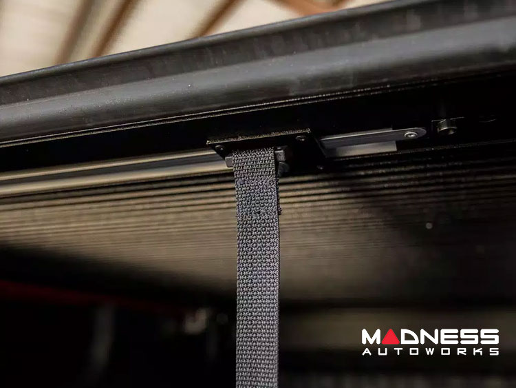 The Switchblade Metal features a pull strap so the user can operate the cover from the tailgate. It also has a built-in, full width handle and continuous tension spring to provide a smooth action from either side of the bed.