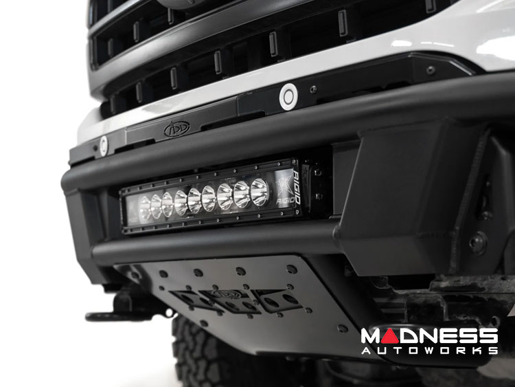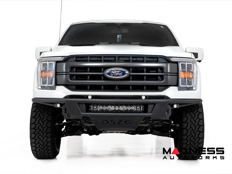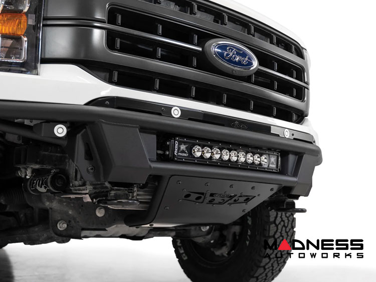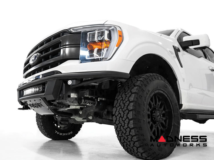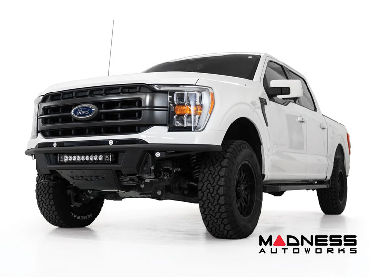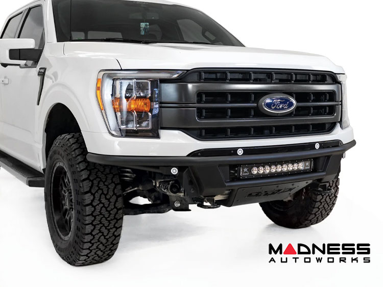 The Pro-Bolt On Front Bumper for the 2021+ Ford F-150 is ADD's slimmest fitting bumper and was constructed in a pre-runner style, giving your truck a serious but stylish look.
