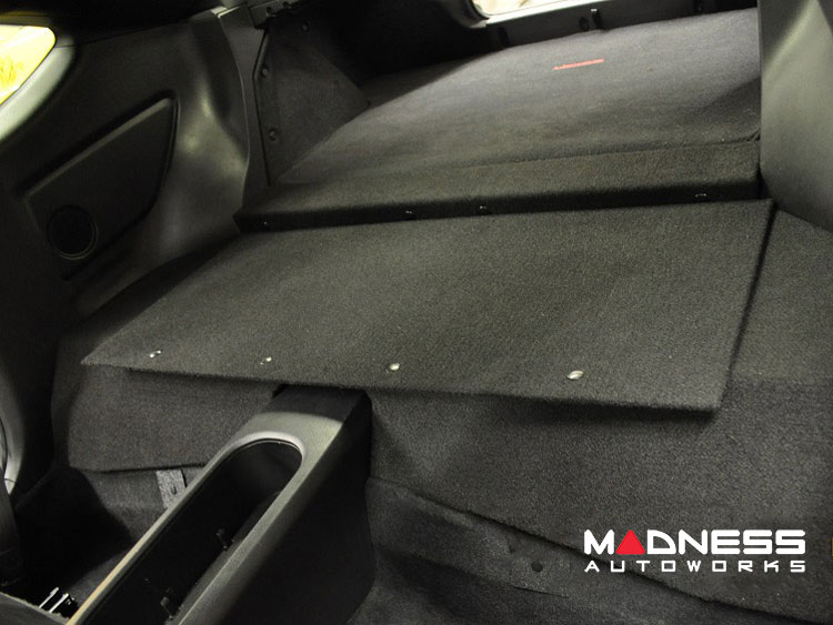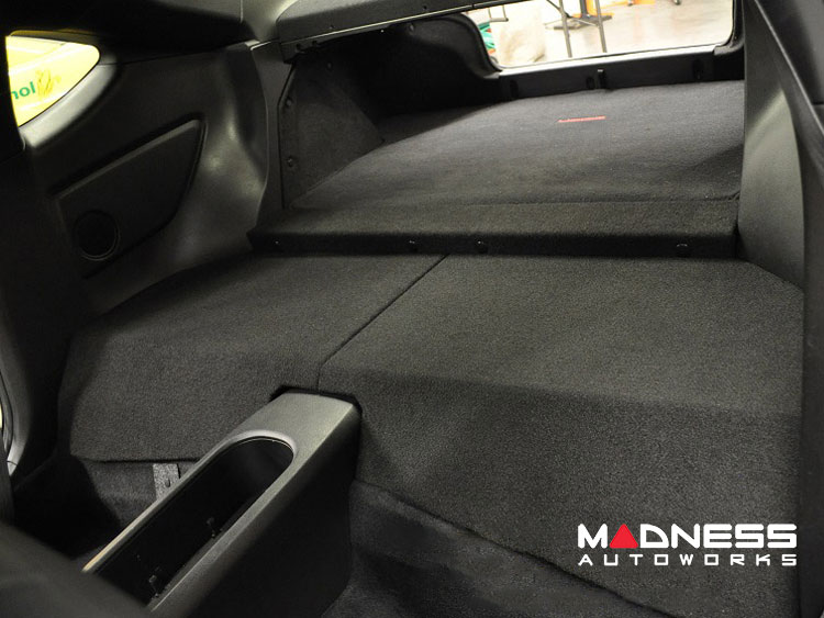 Drop exactly 25 pounds from your Toyota GT86 and create a huge amount of extra cargo space by removing the rear seat components and replacing it with this specially designed Rear Seat Delete Kit.Made from heat-formed ABS plastic and covered in matching black automotive carpet, this kit provides hidden storage space under the lower panels, drops 25 lbs overall from the car, and still provides easy access to the trunk by laying the rear panel down. This is one of the more complex designs, with 4 separate panels included.