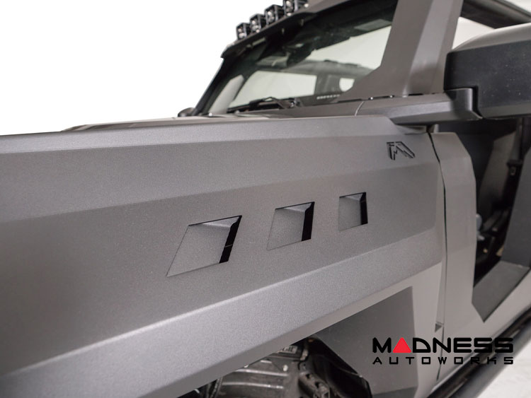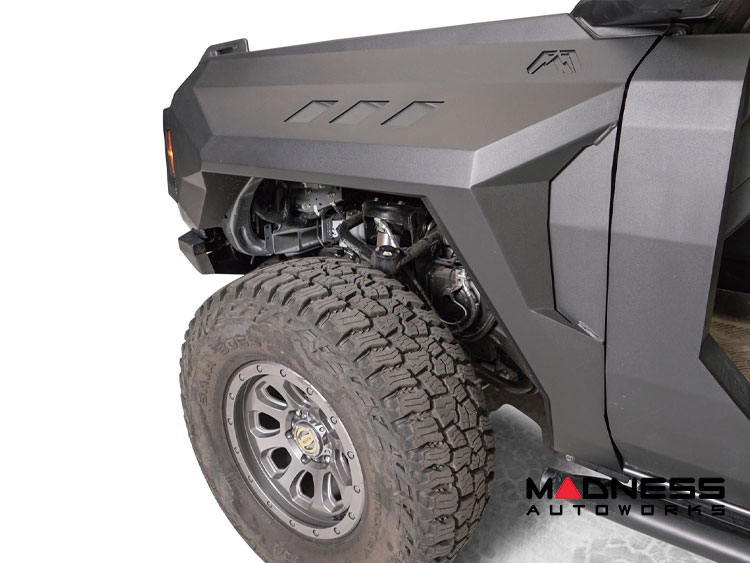 These fenders allow you to run up to a 35-inch tire, front fenders 1 mounting point for a rock-light, front fender vents for added aggressive style.