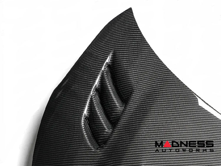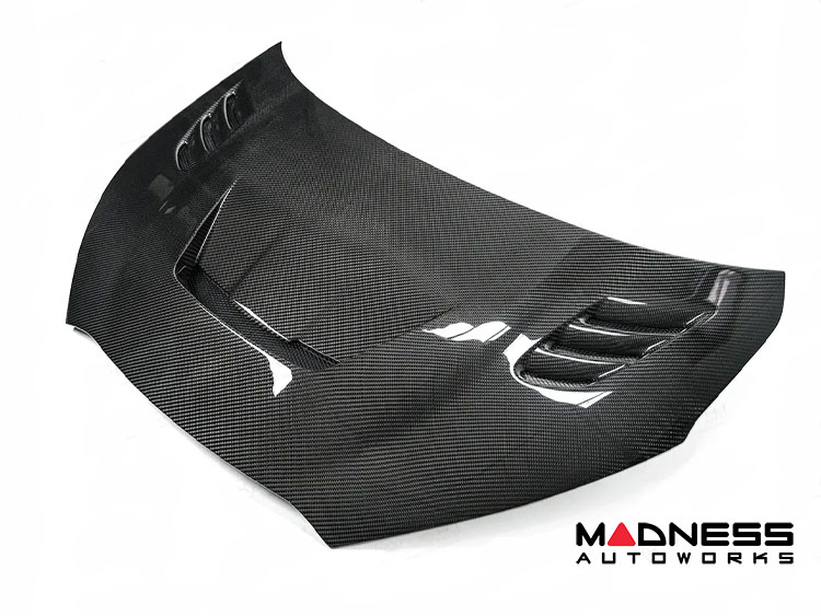 The superior design and craftsmanship reflect the dedication to quality and performance. This hood is not only a visual upgrade but also an enhancement that complements the sophisticated aerodynamic styling of your vehicle, offering both aesthetics and function in one powerful package.