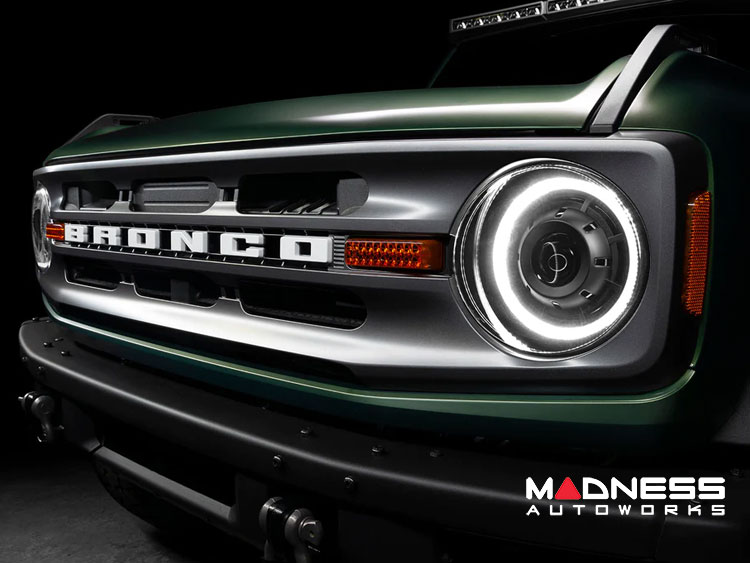 Featuring a unique modular design, easy plug-and-play installation, and advanced LED projection with 5,200 Lumens of high-quality illumination for enhanced driver visibility in all weather conditions. The Oculus headlight is compatible with both the standard and signature Bronco lighting models.