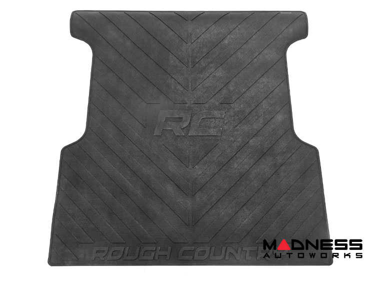 Keep your truck bed free from scuffs, scrapes, and scratches with Rough Country Truck Bed Mats. These heavy-duty, 3/8-inch thick, contoured rubber mats are nearly indestructible; made from a high-quality rubber compound that won’t crack in extreme temperatures or fade when exposed to the sun. This stylized bed mat features a large "RC" and "Rough Country" logo with angled lines for an improved look that also protects your truck bed.