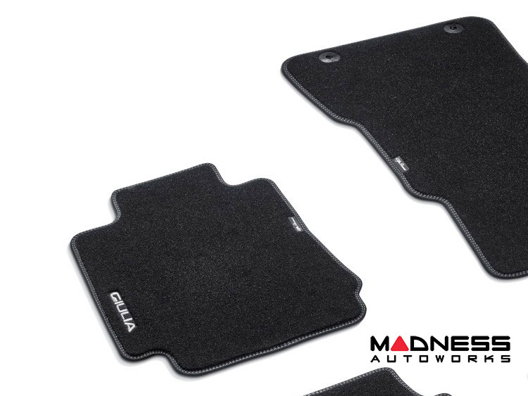 Alfa Romeo Giulia Floor Mats - Genuine Alfa - Black Carpet - Silver Trim - AWD