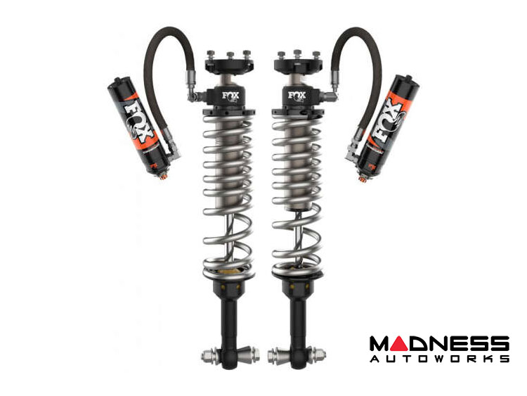 This kit features FOX 2.5 Performance Elite series coilovers with dual speed compression adjusters front and rear. Theses coilovers are designed to provide best in class on and offroad performance. These FOX coilovers are manufactured with aluminum bodies, 7/8” chrome shafts, and compression adjusters. The compression adjusters allow easy tuning of high and low speed compression valving to cater to your driving style.