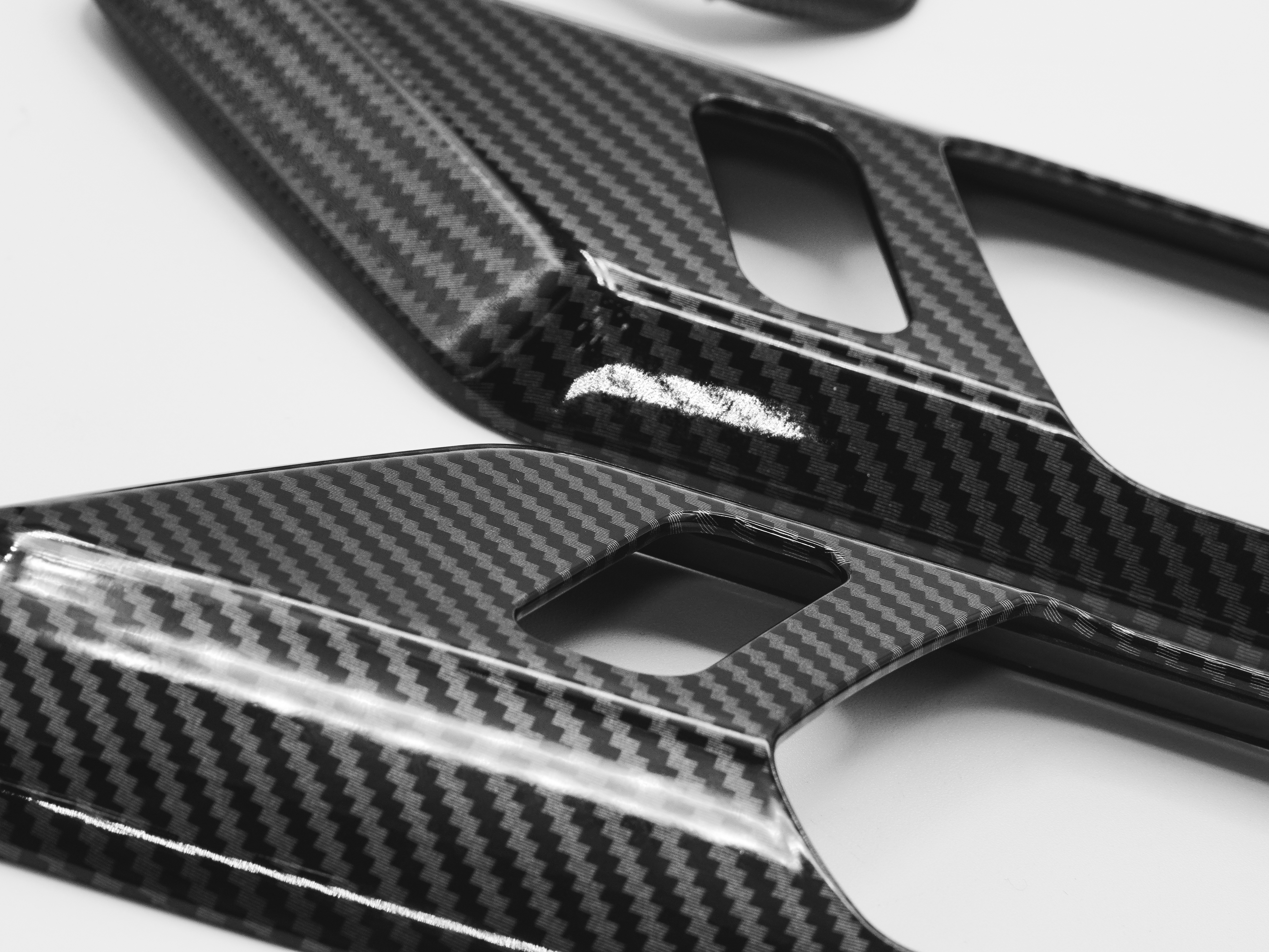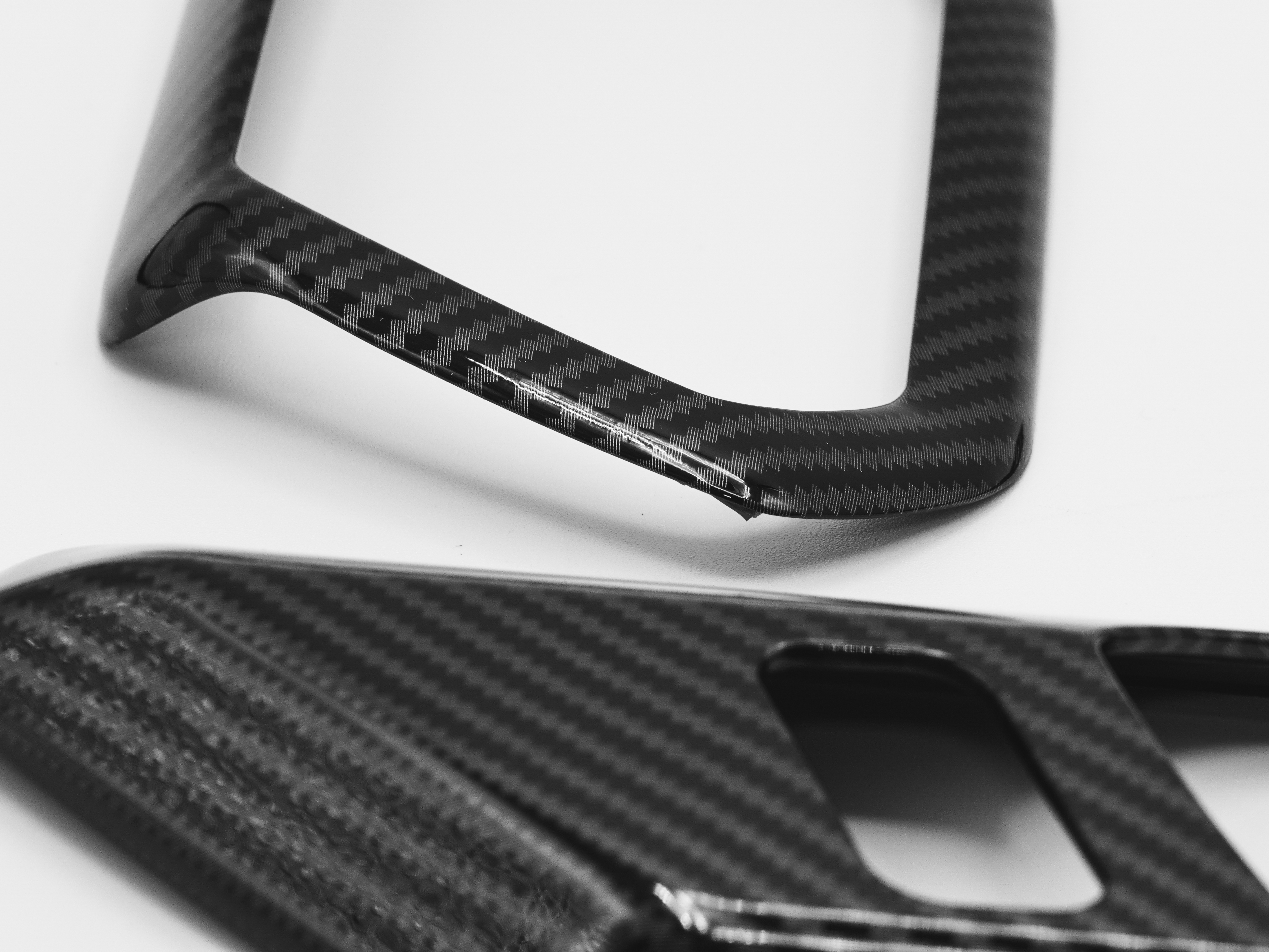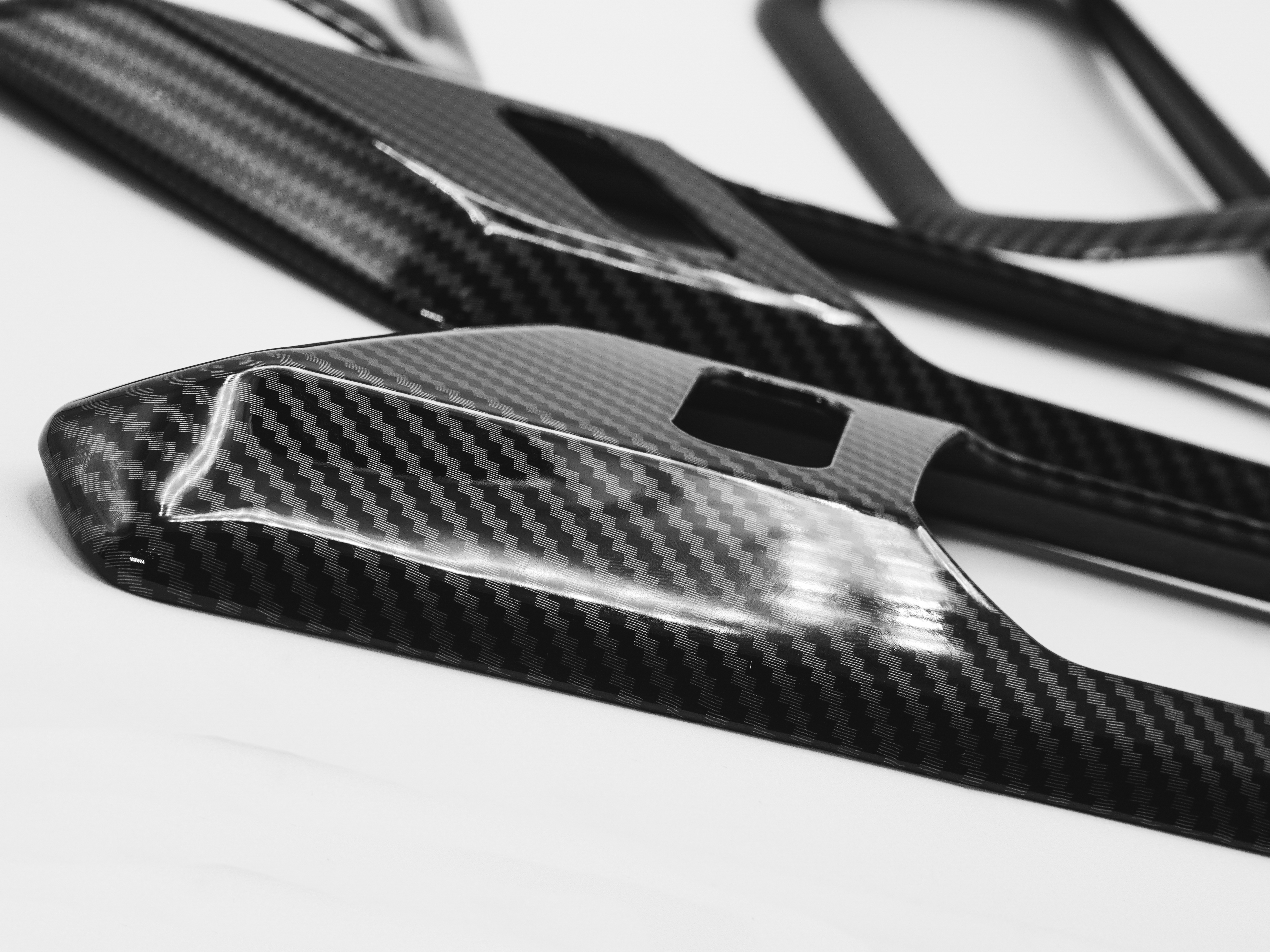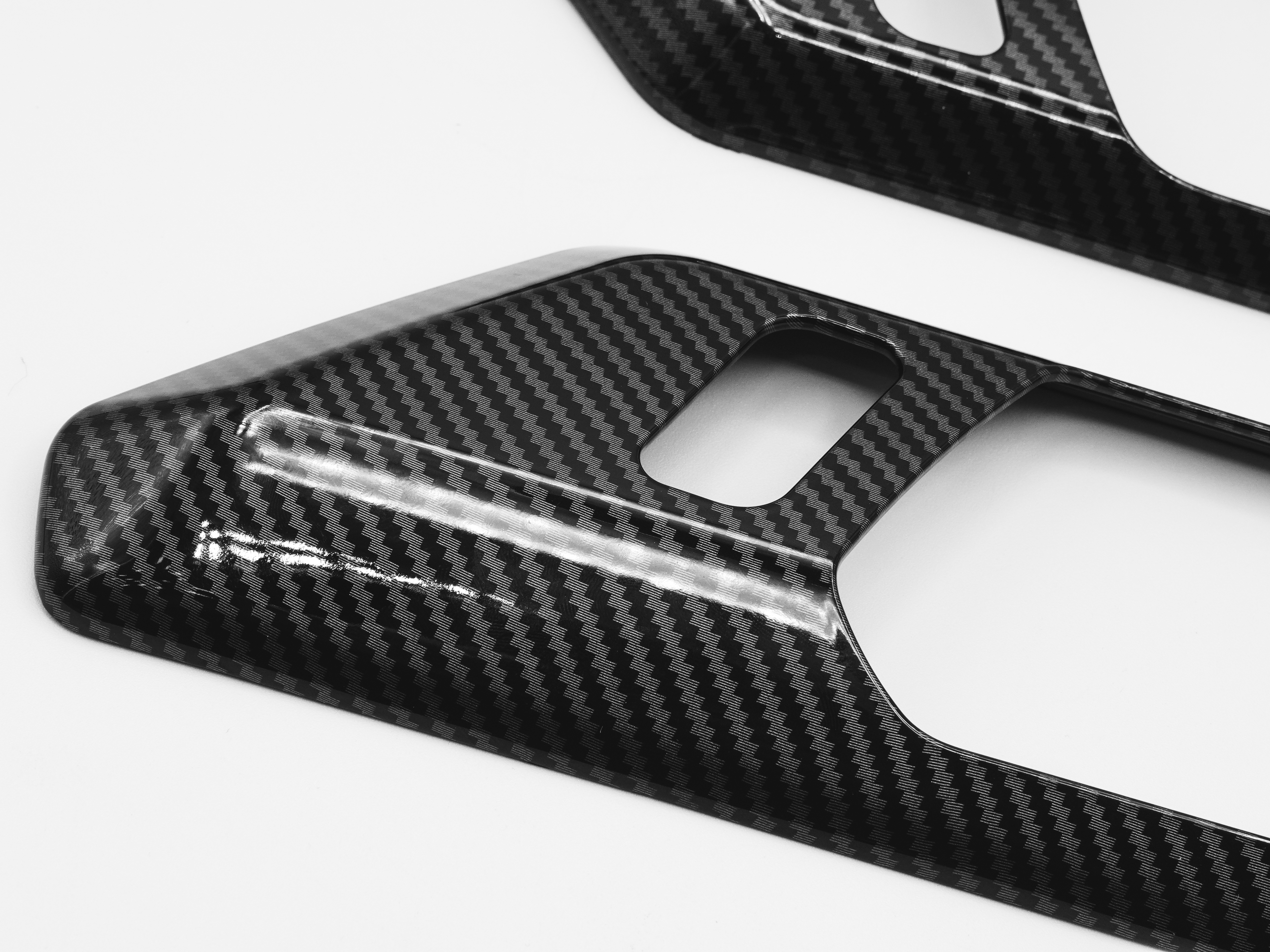 - Gloss carbon fiber finish adds a custom touch