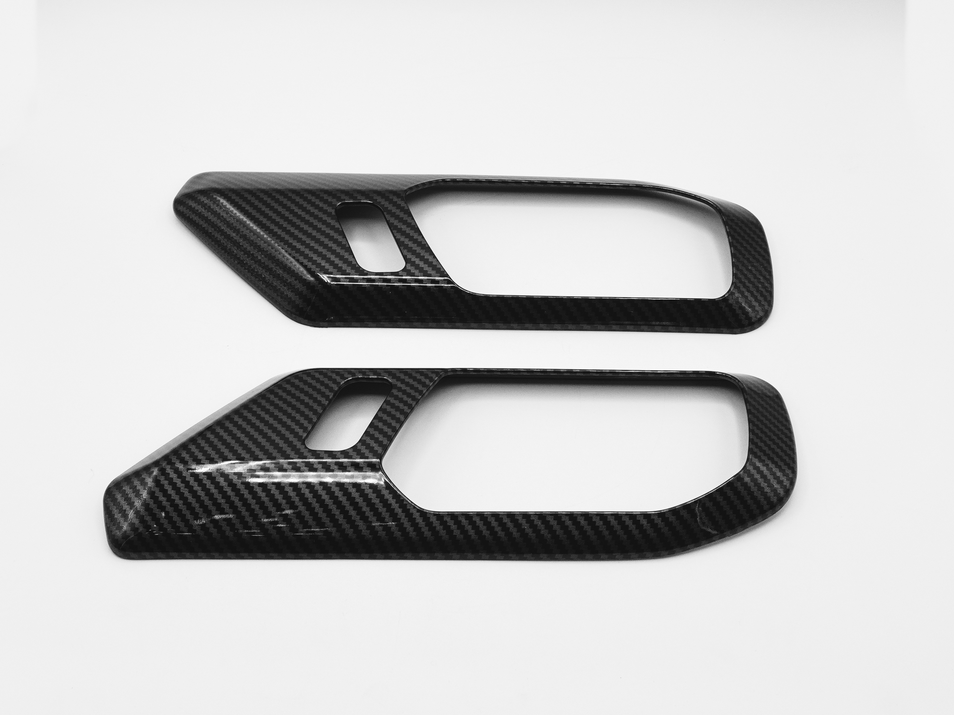 Installing this Interior Door Handle Trim Kit is quick and easy. Simply clean the interior surface, peel off the tape, and stick it in place. For optimal adhesion, you can use a lighter to heat the adhesive tape slightly before applying. You can also remove the self adhesive backing and install with a thin layer of epoxy.