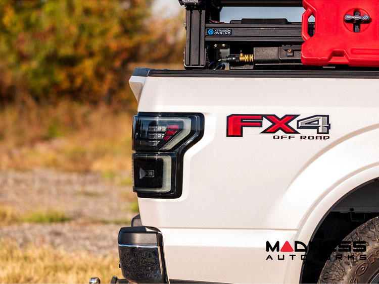 STYLE: Drawing inspiration from the modern OEM LED tail lights of the 18-20 F-150, the XB tail lights perfectly complement the rear end of the new F-150. With an upper row of horizontal 3D Optics illuminated from the rear, courtesy of integrated TIR optics, they serve as the brake light and turn signal. The parking light optic around the outer edge mirrors the OEM LED setup, delivering an equally impressive intensity day or night. Enhanced with the muscular trim and optional smoked or red outer lens, the result is undoubtedly the best-looking set of tail lights for this generation of the F-150!