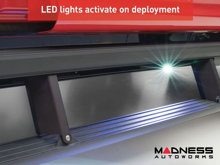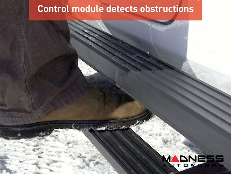The control module of ActionTrac™ lifted truck steps automatically detects any obstructions during operation. This eliminates pinch hazards and avoids damage to the steps out on the trails. The power steps are also set with a two-second delay to avoid retracting too quickly after the door closes. For added safety and visibility, each set of power running boards is equipped with integrated LED lights that illuminate the power side steps upon opening.