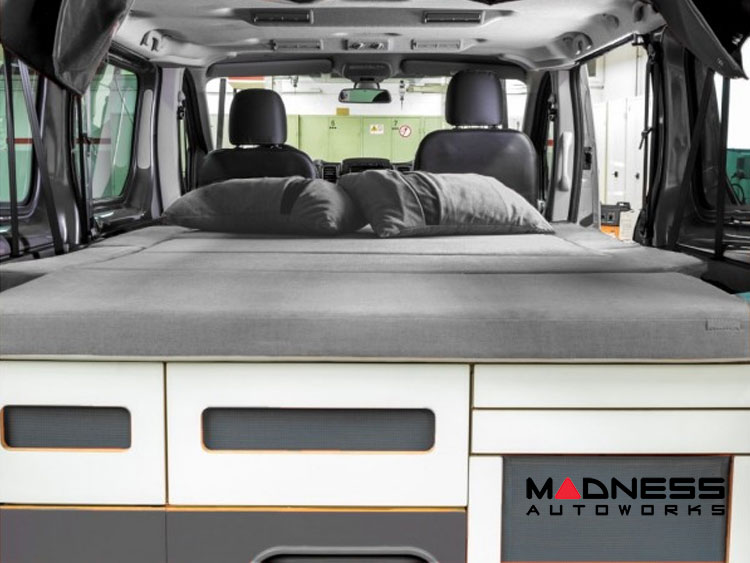 The Volkswagen ID Buzz Camper Kit - Sleeping Platform w/ Kitchen Box - Slate Gray is the perfect addition to your Volkswagen camper van. Designed specifically for the Volkswagen ID Buzz Camper, this kit includes a compact and fully functional kitchen box and a convenient sleeping platform.