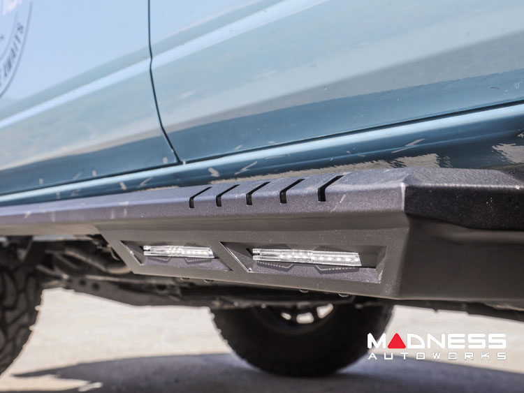 Designed for those seeking adventure and style. Crafted from durable steel, these side steps are designed to withstand the toughest off-road terrains while providing optimal protection for your vehicle's undercarriage. The sleek and stylish design of the side steps adds a rugged yet refined look to your Bronco, making it stand out from the crowd.