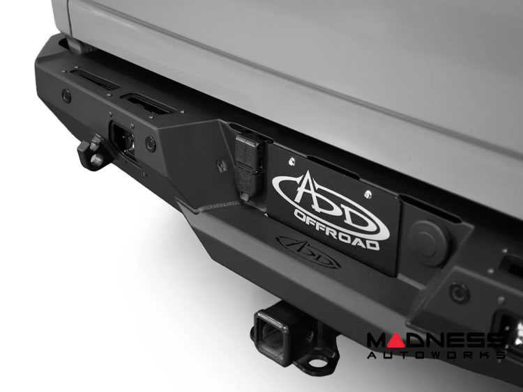The seamless fitment of this bumper, designed to closely follow the contours of your truck, not just elevates its aggressive styling but ensures that essential functionalities such as the OEM parking sensors and trailer plug remain intact.