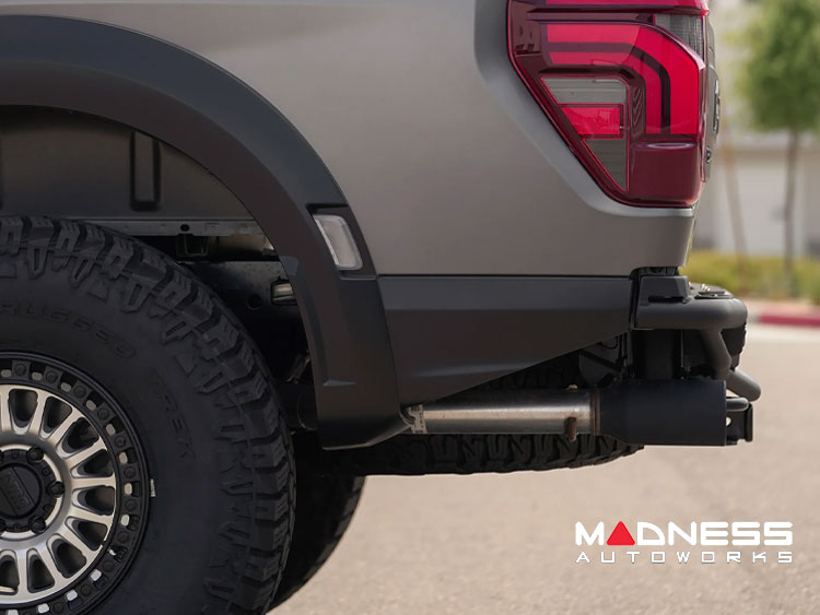 Tailored for the daring desert racer, this bumper ensures you're ready for your adventures off the beaten path. Its dovetail design offers a high clearance profile, which provides advanced rear corner departure angles that enable you to tackle any terrain with ease and style. Inspired by rugged desert landscapes and crafted for high-speed racing, this bumper doesn't just perform; it transforms your truck, accentuating the Raptor's iconic aggressive styling.