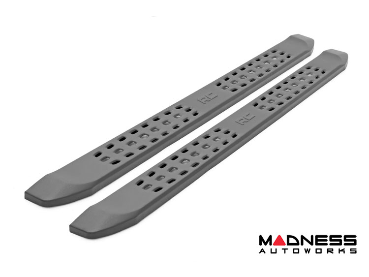 The RPT2 running boards boast a generous 6.75-inch wide stepping area, providing ample space for easy entry and exit. Coated in a matte black powder finish, these steps provide both a stylish look and protection from wear and tear. You can trust the non-slip surface and one-piece steel construction to keep you secure and confident with every step.