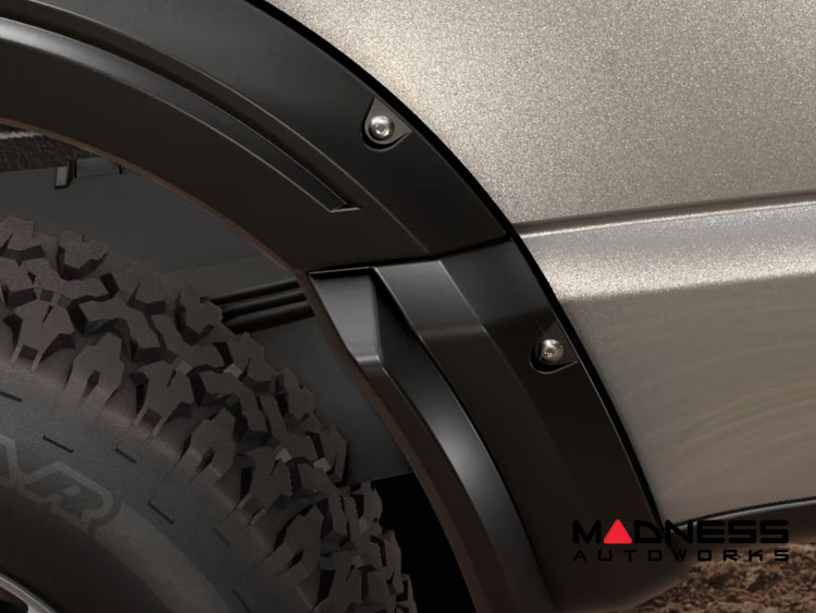 The centerpiece of this kit is Air Design’s patented Super Bolt® Fixation System. This innovative technology ensures a secure, vibration-free connection to your truck’s sheet metal, setting the standard for durability and paint protection. The careful integration of a mud flap design further extends the value of these flares, guarding your vehicle from the everyday wear and tear of the road.