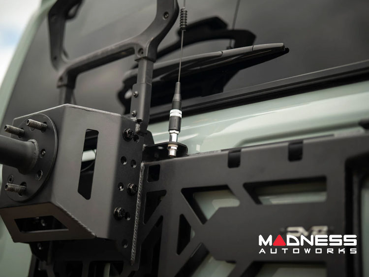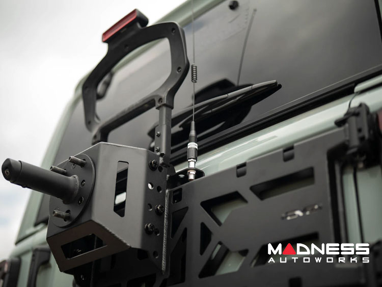 The Wrangler JL Tire Carrier comes equipped with cam nut adjustment, allowing you to achieve a perfect fitment tailored to your needs. For additional functionality, it also includes an antenna/whip flag mount, ideal for off-road adventures. The user-friendly, bolt-on installation ensures a quick setup without the need for extensive modifications. This tire carrier also retains the factory third brake light, preserving essential safety features.