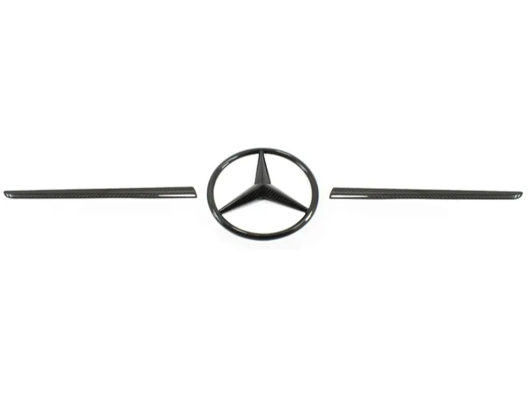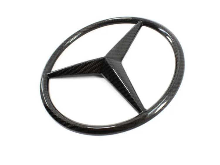 Introducing the Mercedes Benz SLK Emblem Trim - Front - Carbon Fiber - R172. Specifically crafted for the SLK R172 model series from 2011 to 2020, this top-of-the-line carbon fiber trim offers SLK owners an exquisite way to customize their vehicle's exterior with a touch of class.