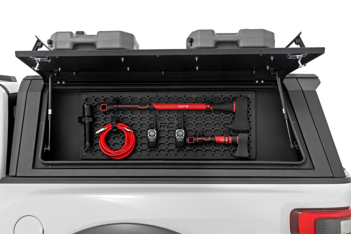 Take your truck's storage capabilities to the next level with the Rough Country Bed Cap Molle Panel Storage Bin. Engineered with precision, it features a durable powder-coated finish that shields against wear and corrosion, ensuring longevity even under the toughest conditions. The integrated LED lighting provides increased visibility, allowing you to easily find your tools or gear during low-light situations. This Molle panel bin offers optimal organization, capable of holding multiple accessories with its secure gullwing door. Whether you’re a weekend warrior or a serious off-roader, the quick and easy installation means you’ll spend more time adventuring and less time setting up.