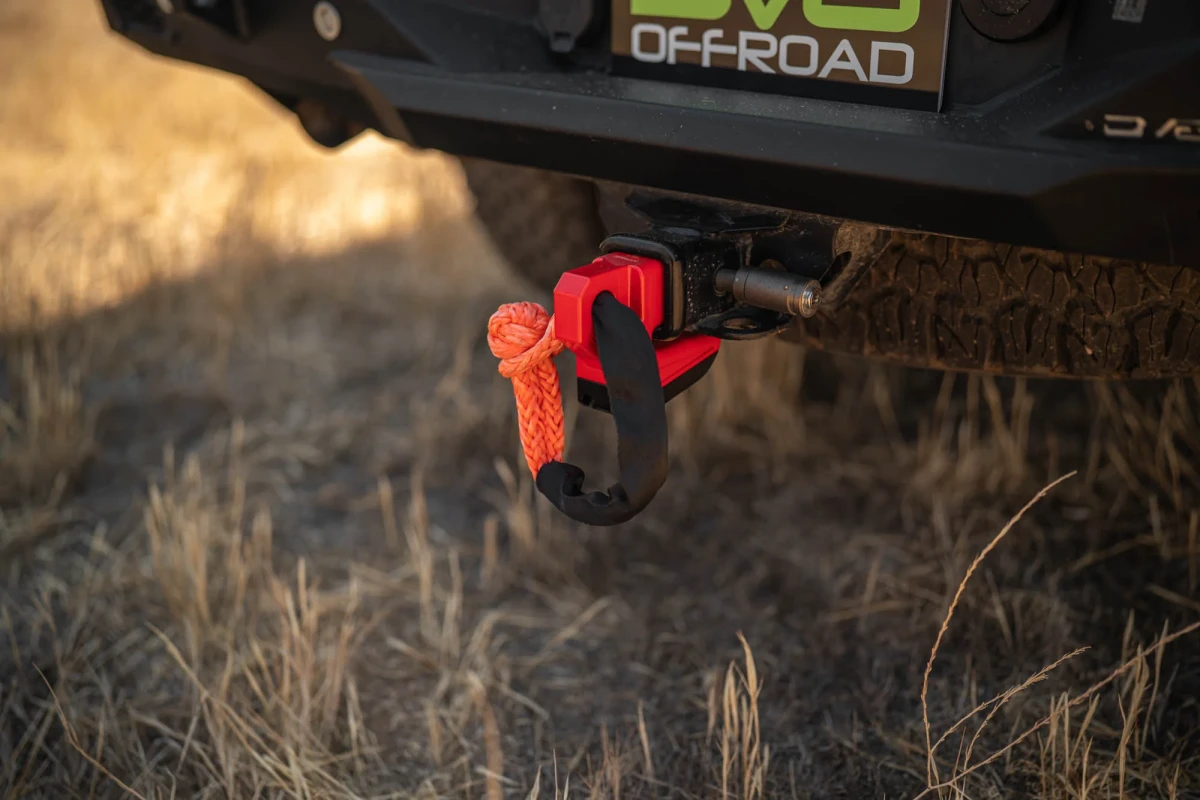 More than just a hitch accessory, the DV8 Xtract Hitch Skid Plate is engineered for toughness and functionality. Its design mounts into any standard 2” hitch receiver using a ⅝” pin. The one-piece design crafted from billet aluminum offers maximum strength and longevity, ensuring it withstands the toughest trails. The skid plate's replaceable Delrin skid pad is pivotal in reducing friction and minimizing damage when your hitch encounters uneven terrain. Additionally, the 1” thick mounts accommodate ¾” D-rings and boast a remarkable 13,000lb working load limit, making this an essential component for secure recoveries during your off-road adventures. Available in raw, black, or red finishes, with an upgrade option to a billet aluminum skid plate pad, this hitch skid allows for personal customization to match your style.