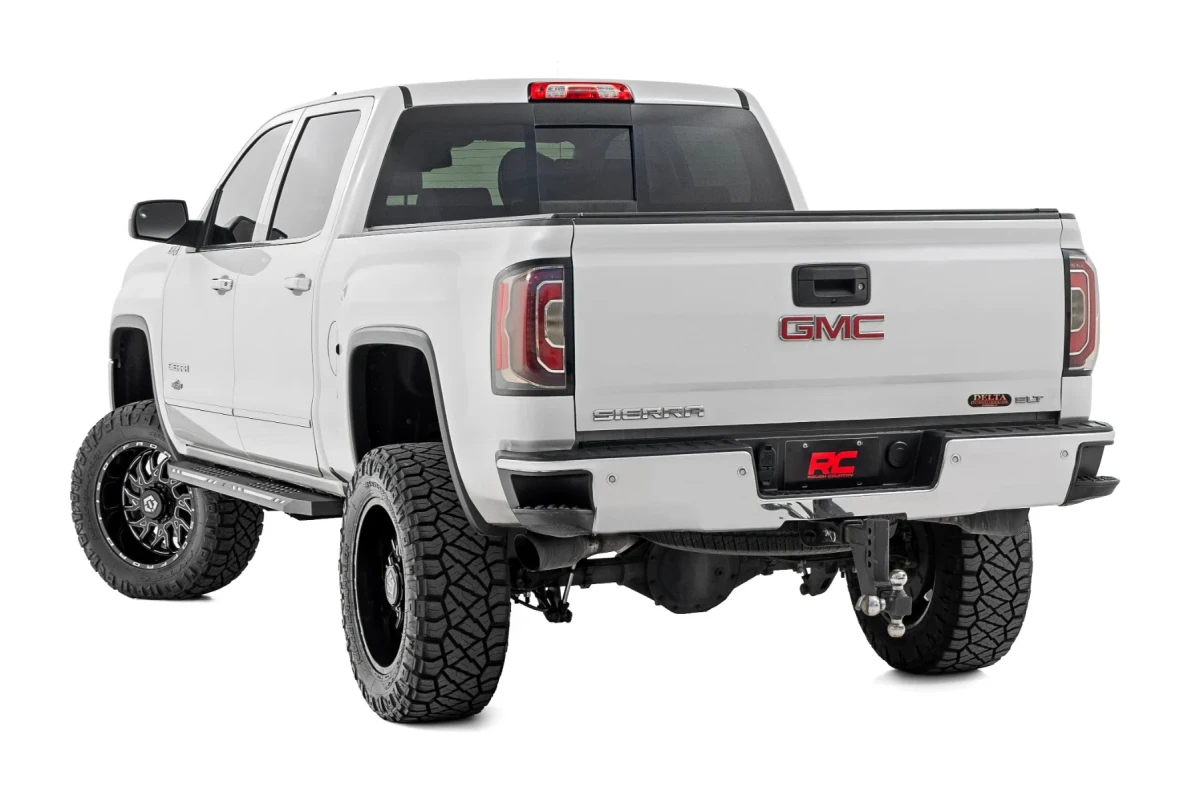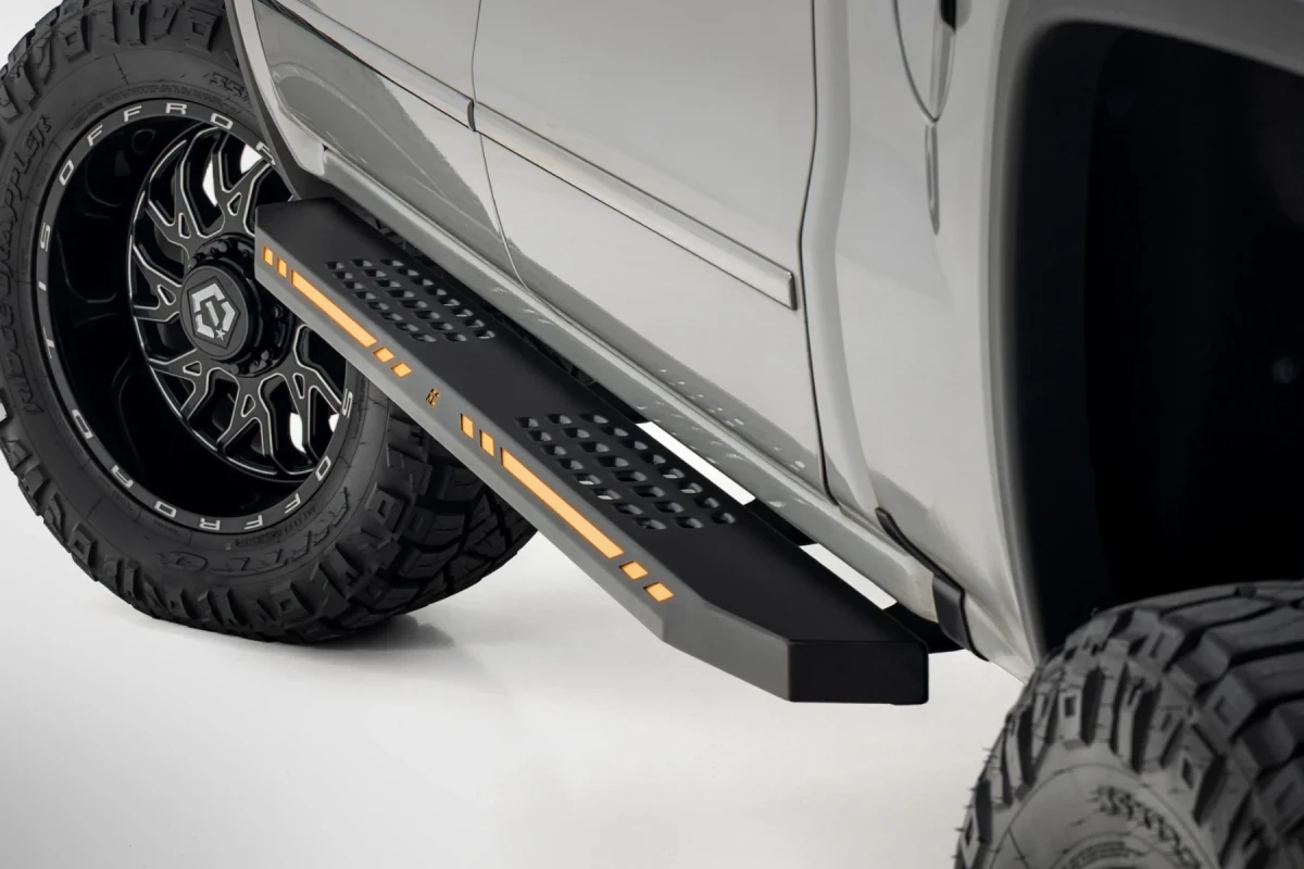 Introducing the Chevrolet Silverado 1500 Running Boards - AC2 Amber/White LED from Rough Country, specifically designed for Crew Cab models from 2007 to 2018. These running boards not only enhance your truck's rugged look but also add functional benefits that make daily driving and off-road adventures more enjoyable.