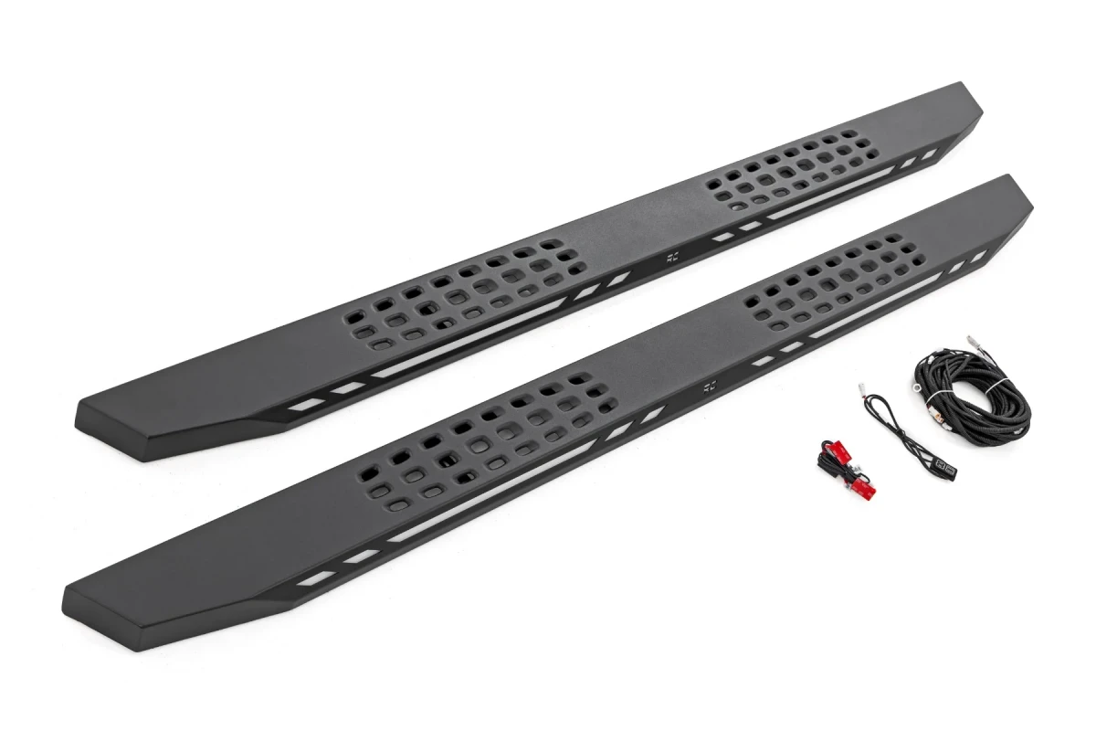 Chevrolet Silverado 1500 Running Boards - AC2 Amber/White LED - Rough Country - Crew Cab '07 - '18
