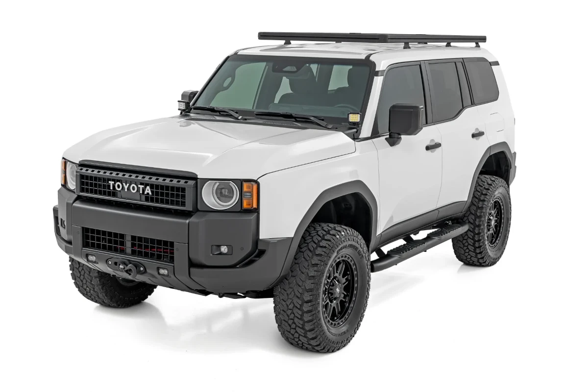 Add functionality to your Toyota Land Cruiser with the Rough Country Oval Nerf Bars Side Steps for 2024 and newer models. These robust steel side steps not only offer practical utility but also blend seamlessly with your Land Cruiser's rugged design to give you both style and durability.