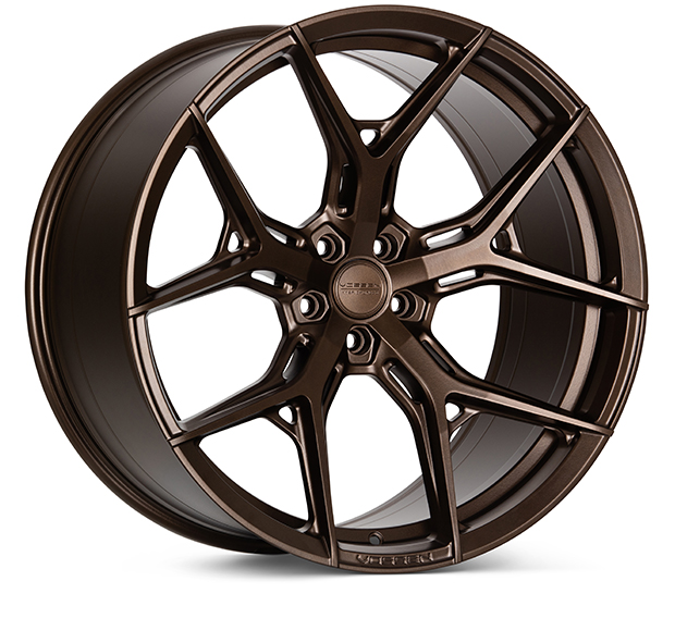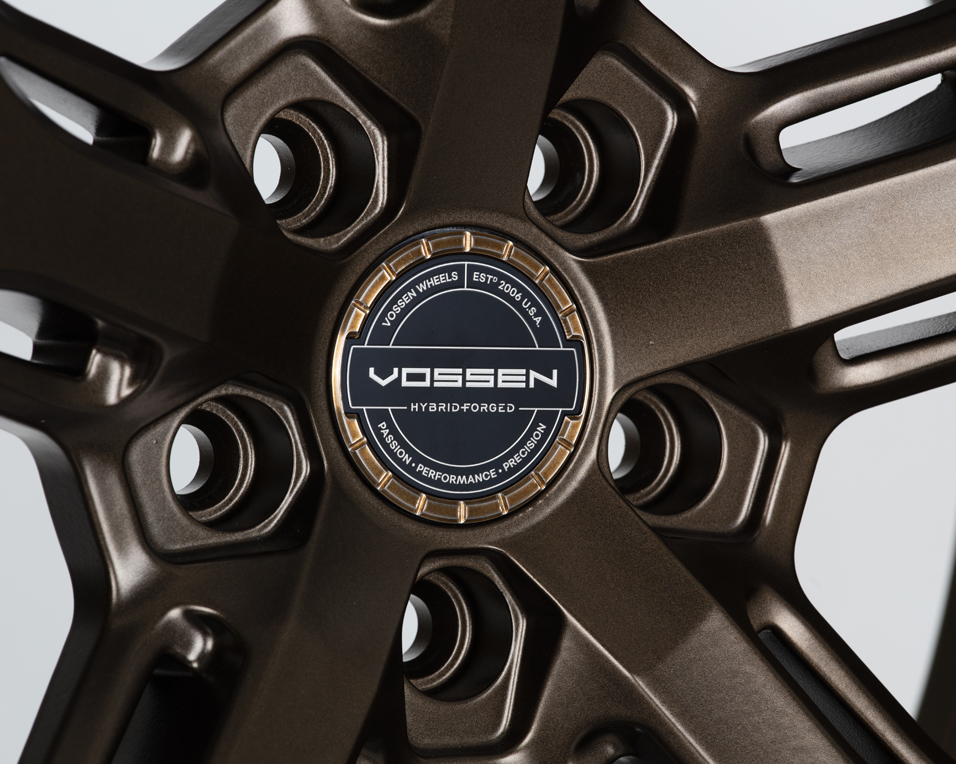 Introducing the Ford Mustang Custom Wheels - HF-5 by Vossen in Satin Bronze. This wheel model exudes confidence, featuring a distinctive Y-pattern design that effortlessly complements the bold spirit of the Ford Mustang.