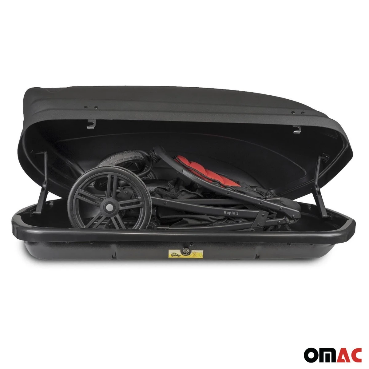 Upgrade your travel experience with the Roof Rack Cargo Box - 11 Cubic Feet - Dual Side Opening - Black. This premium cargo box expands your vehicle's storage capacity, allowing you to conveniently transport extra luggage, sports gear, or camping equipment with ease.
