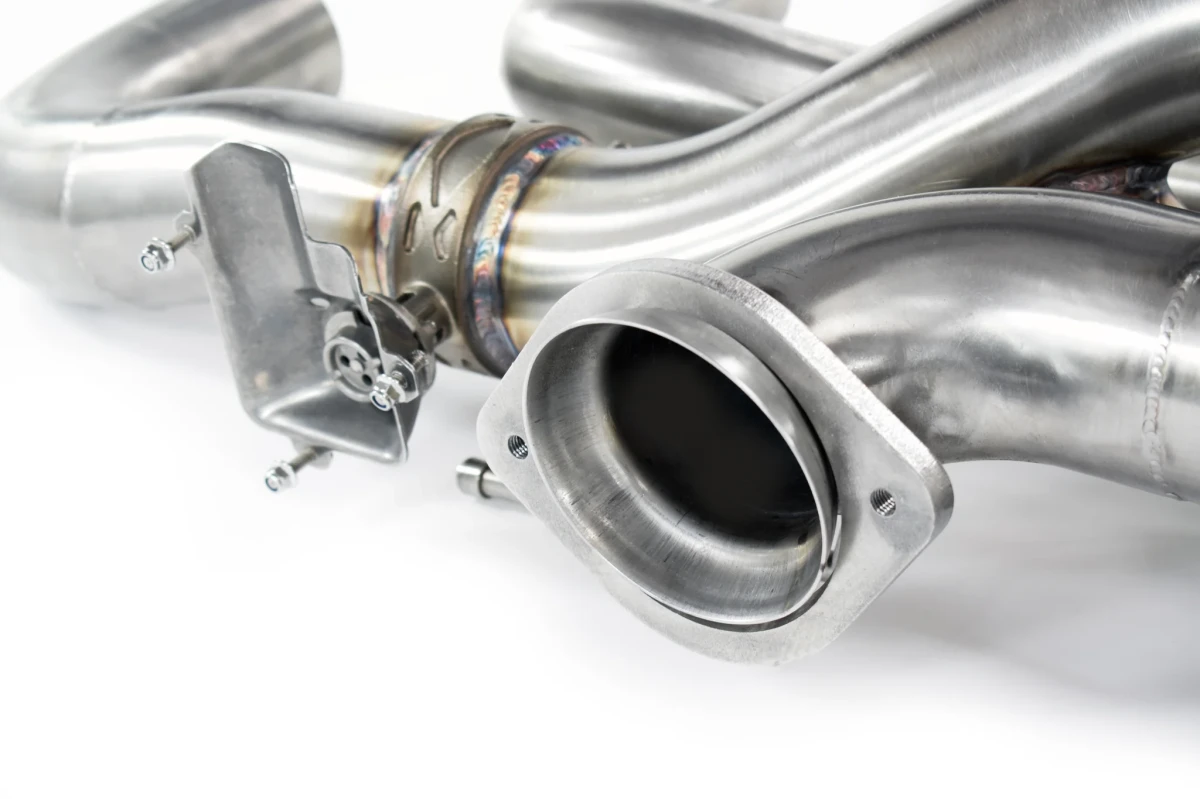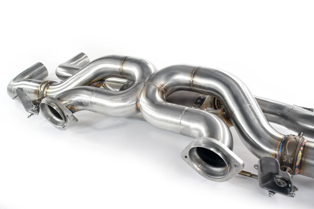 • Integrated 'X' Pipe: Mixes gases outside the silencer when valves open, providing a purer V12 note.