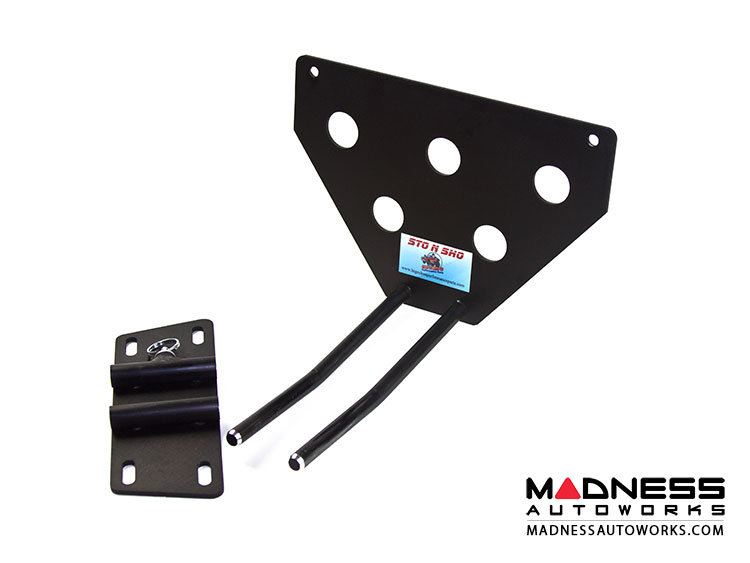 The STO N SHO is a two piece detachable front license plate mounting system consisting of a front license plate holder and a base mounting plate that allows for the easy removal of the front license plate when desired and the quick replacement of the front license plate when needed. When the front license plate holder is removed the remaining base plate is virtually undetectable. The STO N SHO allows you to comply with state law while maintaining the beauty of your Infiniti.