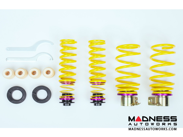 KW took the development of their Coilover Suspension Kits and added a new feature of adjustment to their springs allowing springs to have the same characteristics without breaking the bank.