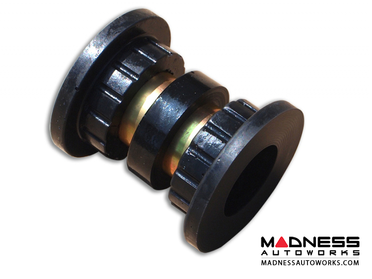 Adjustable Track Bar contains a dual stage Polyurethane / Delrin Bushing kit on one end that has minimal deflection, and a rod end with our pinch bolt housing that allows on Jeep adjustability.