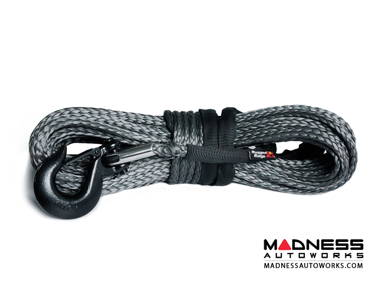 Technological Innovation, Increased Performance. You can count on the high-tech synthetic fiber to hold up during tough jobs. Rugged Ridge includes an abrasion reducing chafe guard that increases line longevity and reduces breaks. A protective sleeve prevents overheating on the winch drum, and each line comes with a black, powder coated latch hook and safety thimble.