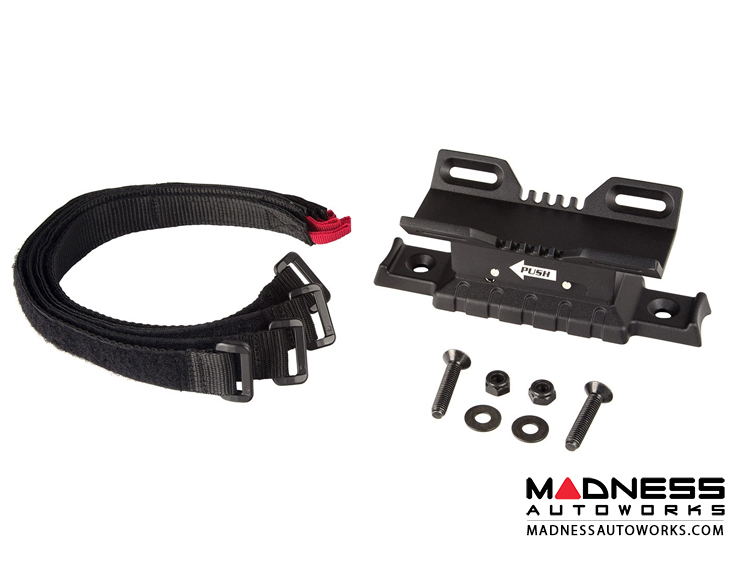 The Elite Fire Extinguisher Holder is the perfect way to store that essential fire extinguisher on your off-road rig. Featuring stunning billet-style cast aluminum construction, durable textured black powder coat and a spring-loaded release mechanism made from 316 Stainless Steel, the Elite Fire Extinguisher Holder sets the standard for both form and function. Designed to work with most 2.5 lb. round extinguishers, the holder can be mounted directly to a roll bar tube or to any flat surface with the included hardware and allows for smooth one-handed access if the need ever arises. (Extinguisher not included).