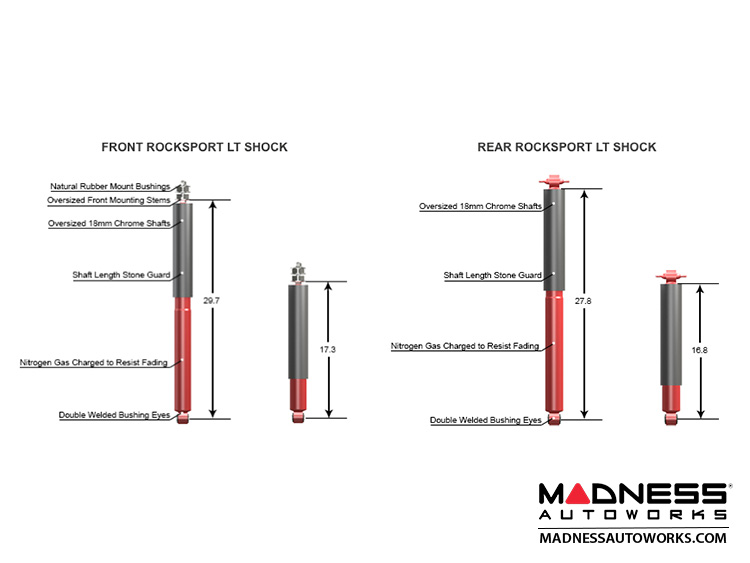 It’s not just a shock, it is a piece in a tuned system. This is not a typical bolt on shock. RockSport LT shocks are valved and specifically tuned to work with MetalCloak True Dual-Rate Coils.