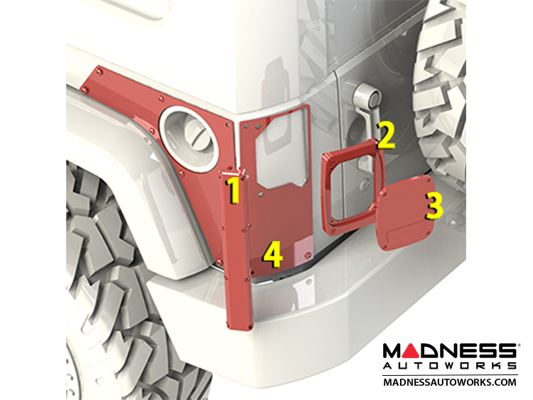 The 4 Door Rear ExoSkin & ExoCorner Kit includes: