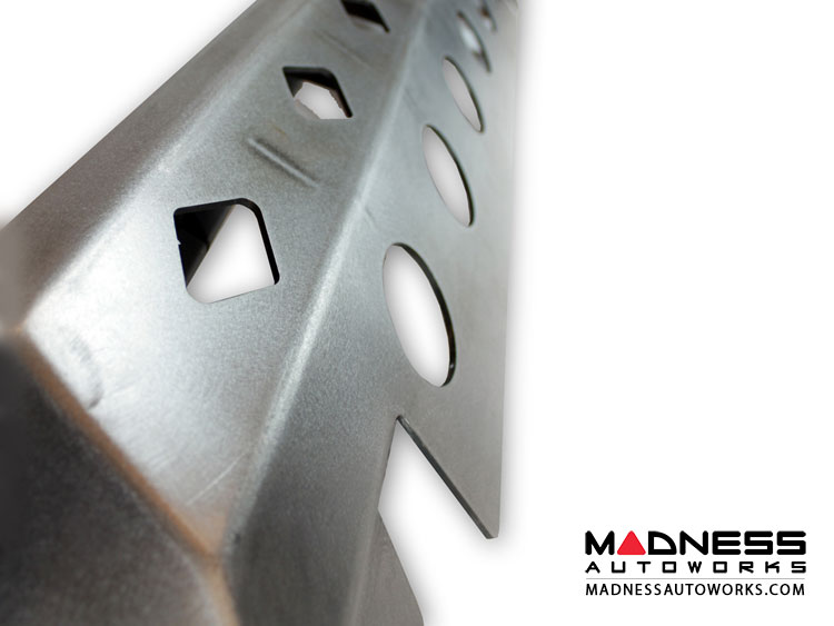 These Rock Sliders are two-piece design, boat-side style rocker armor. The upper piece fits the lower section of your Jeep's exterior sheet metal like a glove, conforming to the vehicles curvature and providing protection. The lower piece incorporates a rub rail/step that protrudes about 3.5" outboard of the Jeep's body tub. The top surface of the rub rail may also serve as an entry step.