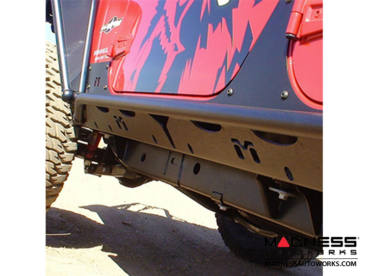 Easily bolts on with the installation of a few rivet nuts. Once installed, easily removed to clean mud and grime off the JK body.