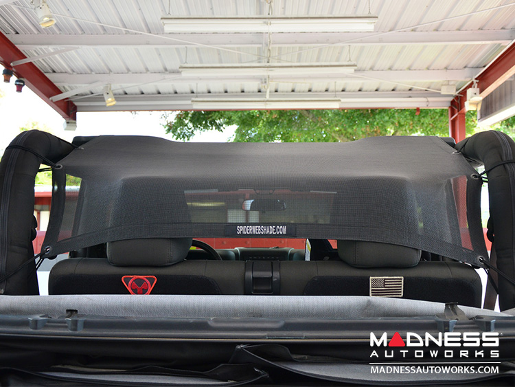 The JK2D Long is a perfect product for the summer. It is an extended version of the original JK2D providing additional shade for backseat riders and increased wind reduction for everyone in the cabin. The JK2D Long actually wraps around the rear headrests providing a very tight custom fit. This product can be paired with the JK2D Sides to create a JK2D ShadeCage.