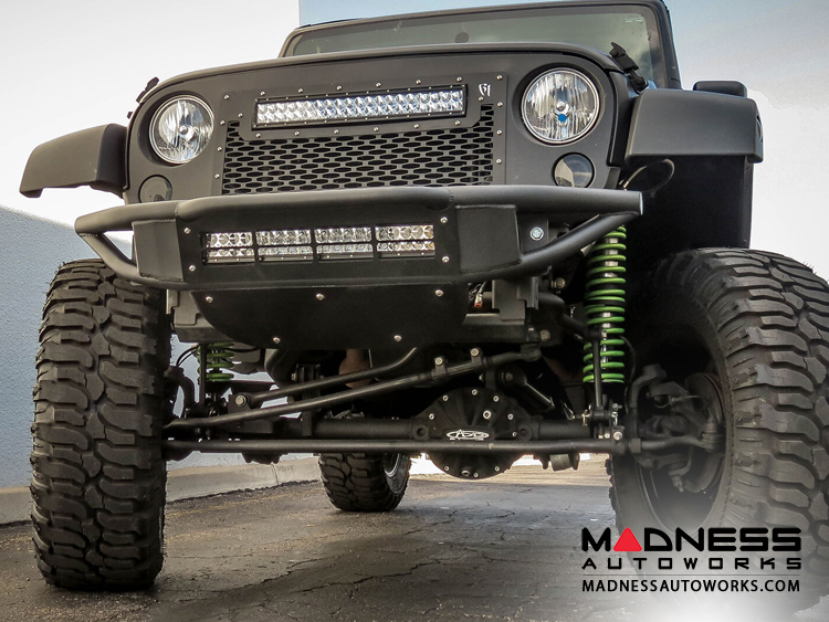 As the leader in the off-road aftermarket part industry and the first to introduce custom aftermarket hand built front bumpers for the Jeep Wrangler JK, Addictive Desert Design strives for quality! The Venom front bumper easily makes it to the top of the list with its construction using formed tube .120 wall steel and CNC cut aluminum panels, ensuring a tight and slim fit on your Jeep Wrangler JK.