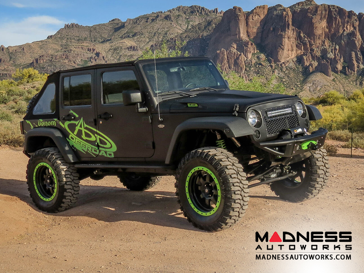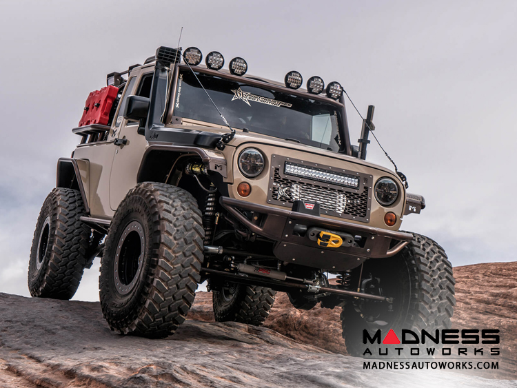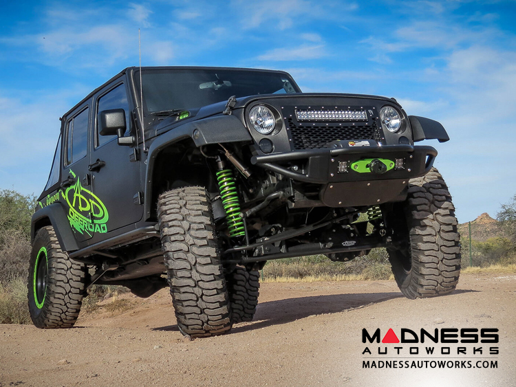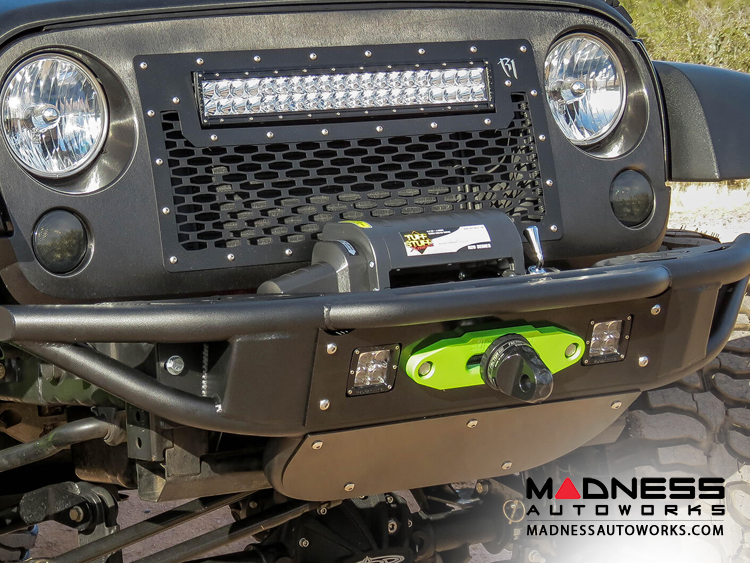 As the leader in the off-road aftermarket part industry and the first to introduce custom aftermarket hand built front bumpers for the Jeep Wrangler JK, Addictive Desert Design strives for quality! The Venom front bumper with winch mounts easily makes it to the top of the list with its construction using formed tube .120 wall steel and CNC cut aluminum panels, ensuring a tight and slim fit on your Jeep Wrangler JK all while maintaining factory line location. Keeping air flow and cooling in mind, the engineers at ADD designed this bumper with the winch mount inside the bumper allowing air to flow into the radiator.