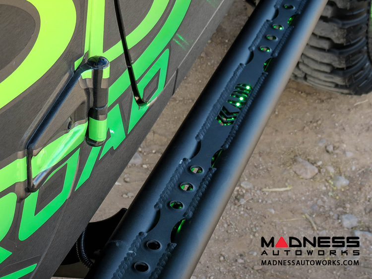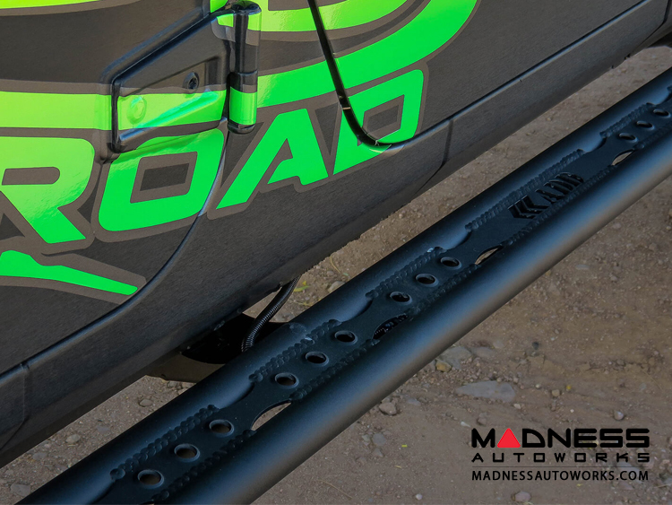 These Jeep JK Venom Side Steps are designed to improve side body protection, add an aggressive rock crawler look, and all while staying a tight fit to the vehicle. The Side Steps are manufactured from .120 wall tubing and plate steel plates making these the toughest sliders on the market. Best of all is that these steps are 100% bolt on!