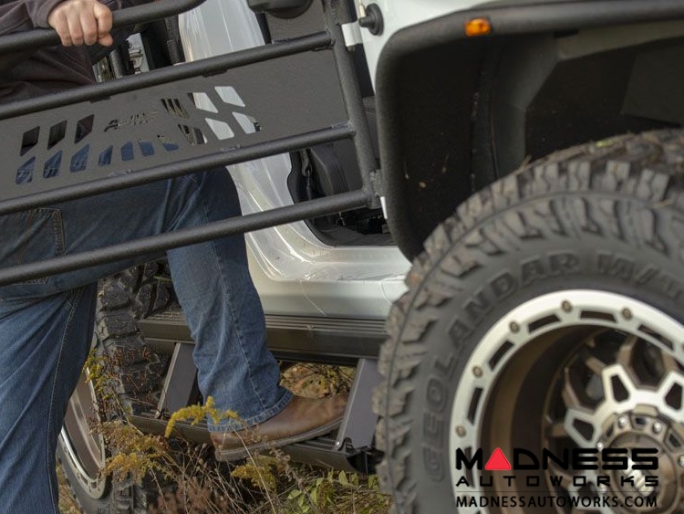 The smart sensors of ActionTrac™ lifted truck steps automatically detect any obstructions during operation. This eliminates pinch hazards and avoids damage to the steps out on the trails. The sensors are also set with a two-second delay to avoid retracting the power step too quickly after the door closes. For added visibility and safety, each set of power running boards is equipped with integrated LED lights that illuminate the power side steps upon opening. The boards are operated with a single rotary motor sealed within the main housing that helps protect it from the elements. Another unique advantage of ActionTrac™ running boards is their ease of installation. Each set of these power running boards is designed for the vehicle-specific applications, and they mount using pre-existing holes in your rig.