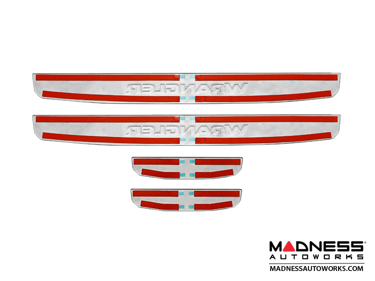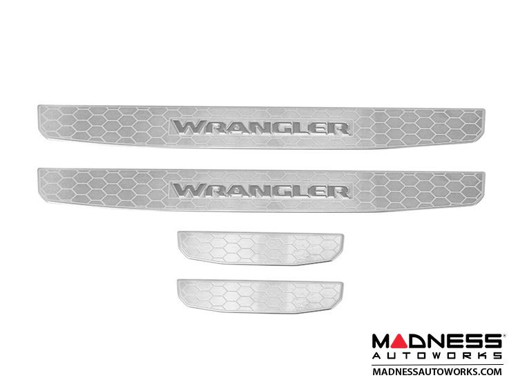 Give the door sills in your rugged 4-Door Jeep some additional scratch and scuff protection with this Mopar Stainless Steel Door Sill Guard Set. This set comes with two front door sill guards and two rear door sill guards to cover all four door sills in your JL!