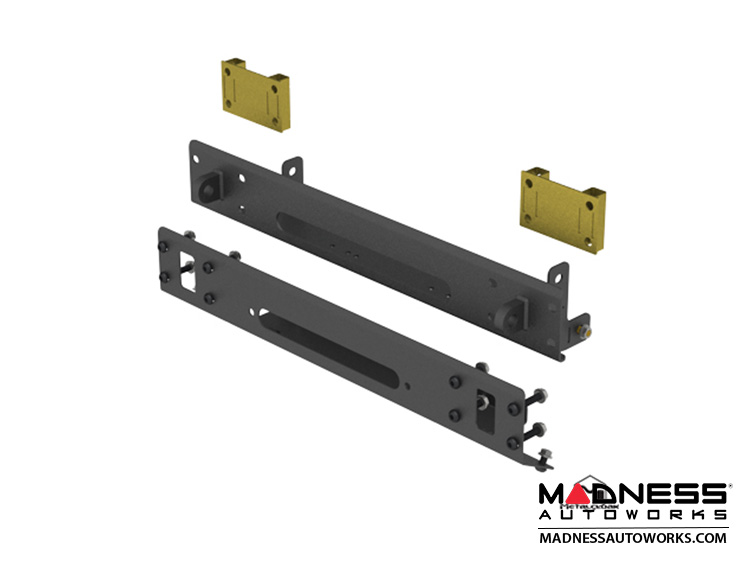 Starting with the Frame Built Bumper base, this is equipped with Crawler Caps that configure it to be a lo-profile, hi-clearance bumper with a total width of 46". The Mid Stinger gives added protection and a unique look that will set your Jeep apart from the crowd. Ready for your choice of winch to be mounted, this configuration provides a great look with the added protection to get you out on the trails with confidence.