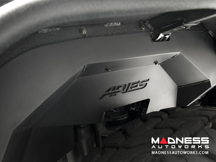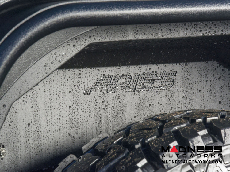ARIES Jeep fender liners are not only built to outlast the rigors of offroading, but they are also engineered to offer enhanced protection for the engine. The front fender liners integrate with the wheel wells and create a shield for the engine compartment, helping to block water, mud, road salt, gravel and other threats. The powder-coated aluminum construction provides increased protection versus the plastic factory liners, and it maintains long-lasting corrosion resistance.