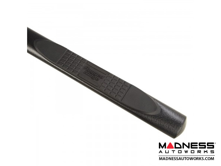 These 4-inch oval side steps offer an even more muscular appearance that’s perfect for lifted Jeeps and oversized tires. Rugged Ridge steps feature .07-inch thick wall steel tube that is E-coated and treated to a beautiful textured black powder coat finish for superior rust-resistance. All Rugged Ridge Tube steps are designed specifically for your model Jeep giving a truly custom fit. The included high-strength installation brackets are constructed of durable powder coated steel for long life and years of flex-free use. Each Tube Step includes UV-treated step pad inserts at every door, providing traction in any weather and easing vehicle entry and exit. Rugged Ridge Round Side Steps carry an impressive 300 lb. max weight limit. All installation hardware and easy-to-follow instructions are included.