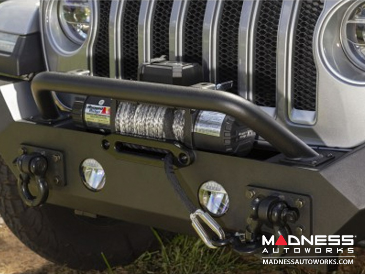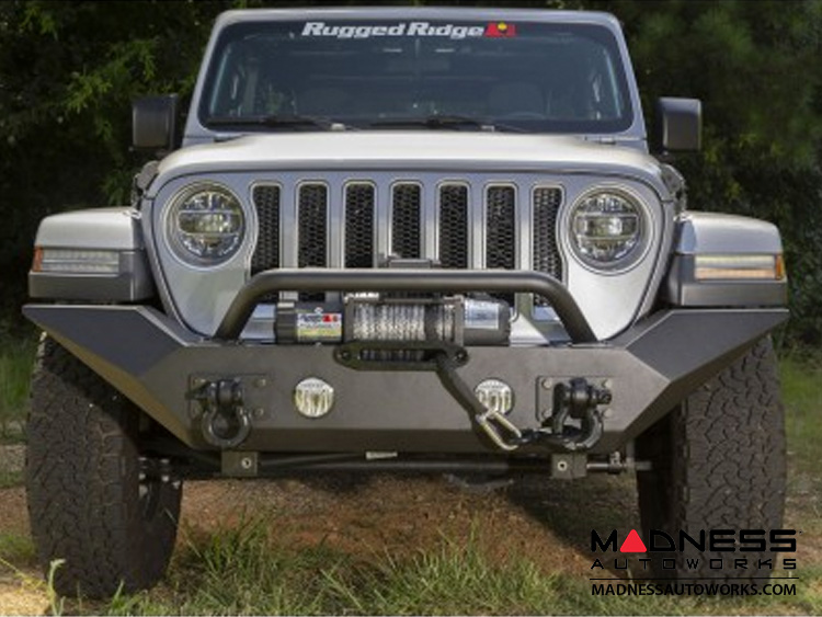 The Spartan Front Bumpers one-piece design features ultra-aggressive high clearance bumper ends that angle cleanly upward to match the profile of factory fender flares relaying a look of symmetry, style and strength. Each bumper is built from high-strength plate steel that utilizes fold & weld construction for greater structural integrity, precise fit and a high-quality appearance. A tough satin black powder coat finish resists rust and corrosion, keeping your Spartan bumper looking and performing great for years to come. Each bumper includes a stand-alone winch plate as the central backbone for the bumper and includes D-shackle mounts to complete the package (D-rings not included). The Spartan Front Bumper is a direct bolt-on replacement for 2018-Present Wrangler JL models and includes all the necessary hardware for a worry-free installation. The Spartan even utilizes the factory Sahara or Sport fog lights for a finished look without any added expense. Best of all, it’s backed by our industry-leading 5 year limited warranty, making it the best built, budge-minded bumper on the market today. Patent Pending