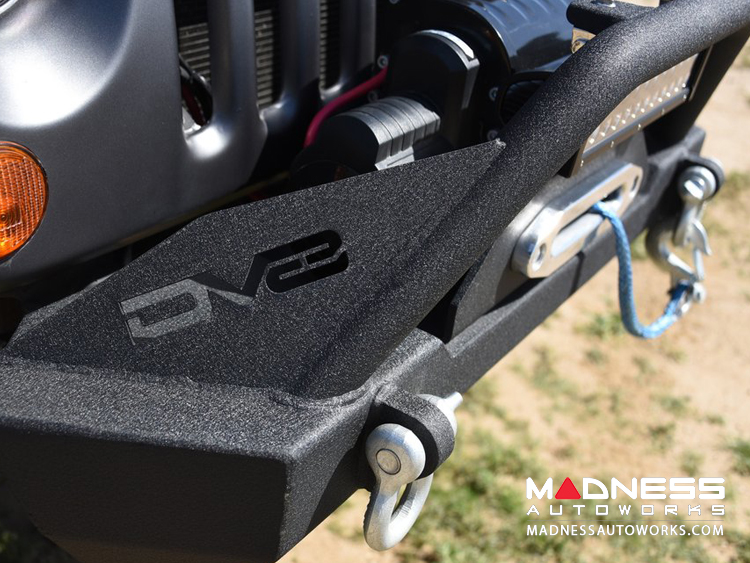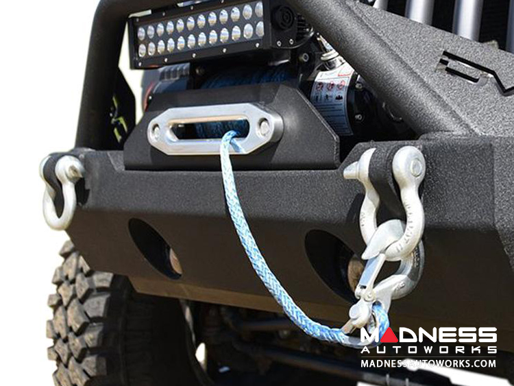 These bumpers are designed to perform on the rocks where you need protection the most. All of our Hammer Forged front bumpers have heavily reinforced winch plates, great approach angles, and are made of thick, high tensile strength steel. The steel thickness of each part of the bumper was chosen to keep strength up and weight down, certain parts of the bumpers are made of 1/4" steel while others are made of 3/16" steel depending on the amount of abuse that each part is likely to take. The result is a lighter, stronger bumper that is ready to take on the toughest challenges that you will throw at your Jeep.